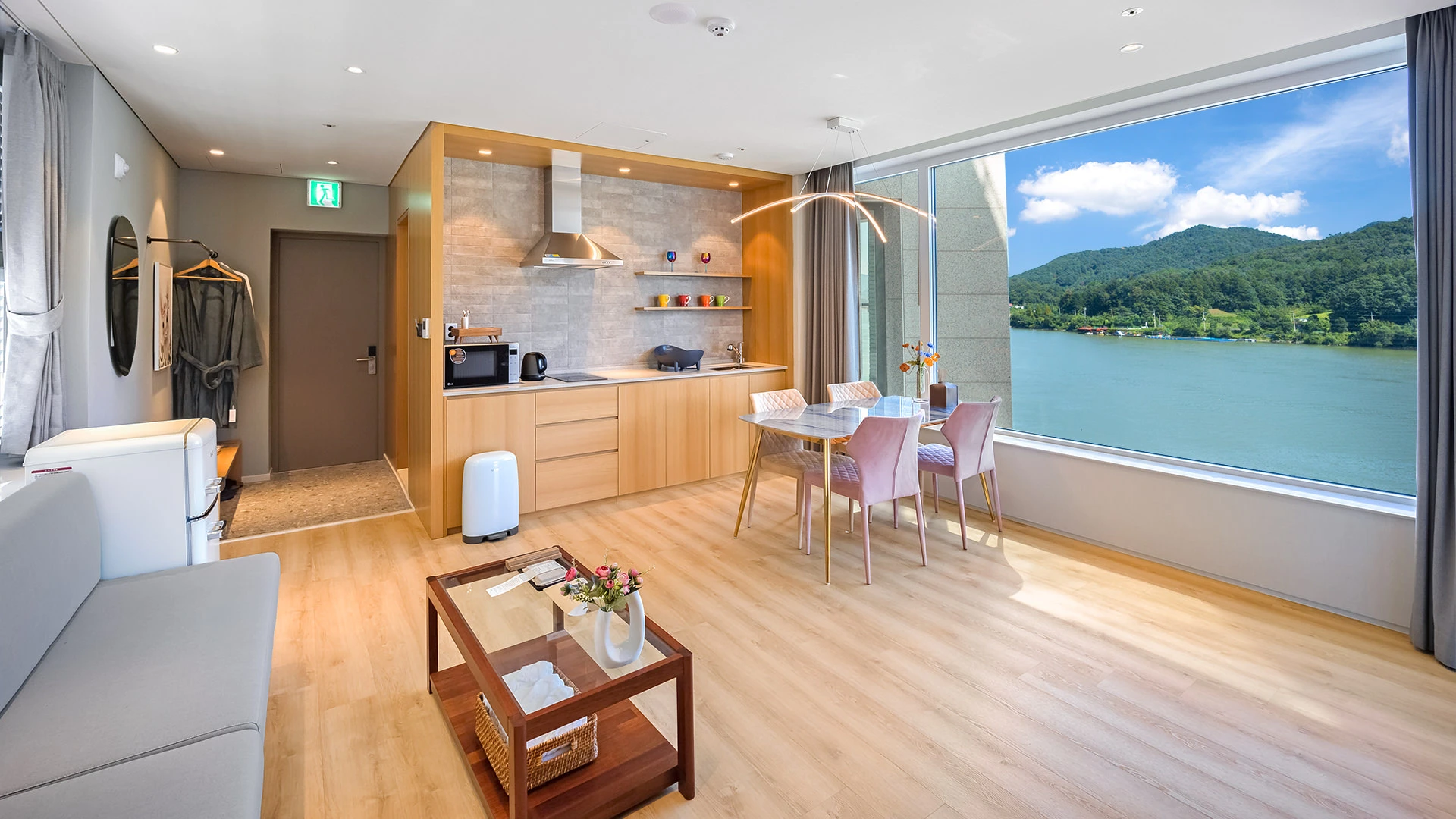 깨끗하고 편안한 객실에서 강을 바라보며 휴식을 즐겨보세요.